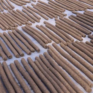 They are crafted from pure cow dung that is sun-dried and compressed into log form.